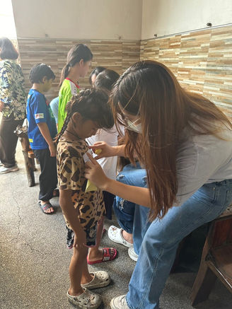 We began with informative sessions where children were taught the critical importance of effective hygiene practices. In the interactive segment, each child received a hand sanitizer to decorate with stickers, fostering a sense of ownership and excitement. The children then drew representations of viruses and dirt on hand simulations, visually demonstrating how invisible contaminants can linger on our hands. By using their hand sanitizers to clean their drawings, the children saw firsthand how effective these products are in maintaining hand hygiene. This was followed by a practical demonstration on the correct practice of handwashing, so that the children learn both how to effectively clean their hands with soap and water, and the proper use of hand sanitizer as an alternative when necessary.